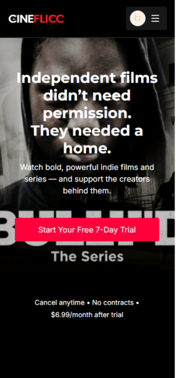 Your 7-day free trial gives you full access to every CineFlicc Original and featured film. Cancel anytime.